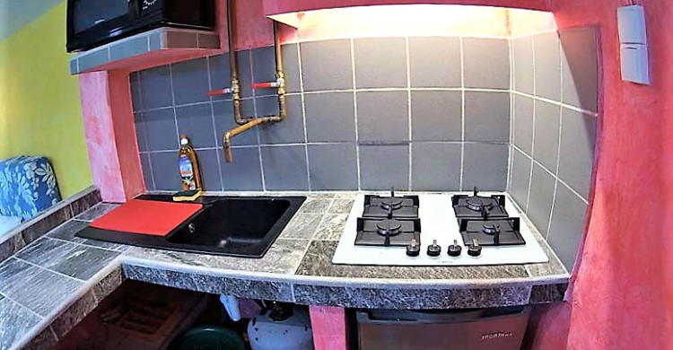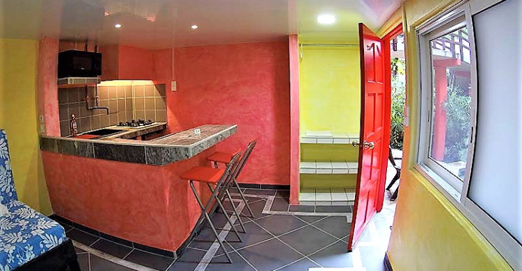 A tiny studio just for 2 people. Nestled in a pretty garden, rocked by the sound of a small waterfall. A well equipped kitchen and a bathroom complete this quiet accommodation. A large shared terrace offers a beautiful view of the lagoon.