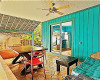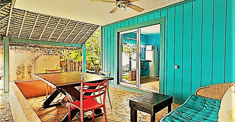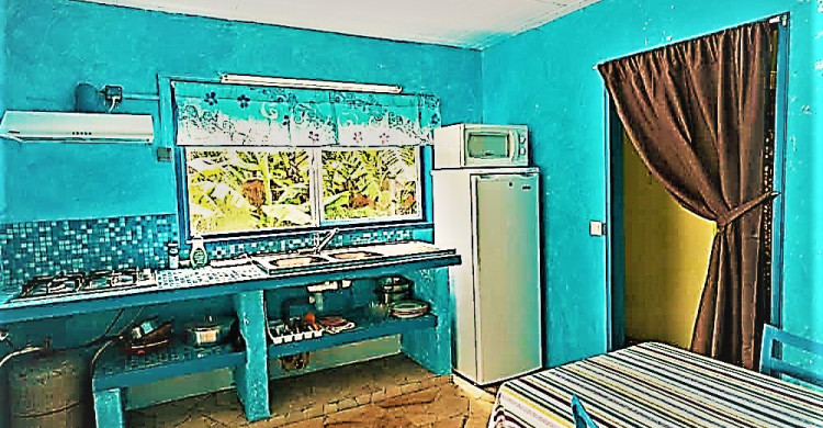 A large and comfortable studio, the bedroom area separated from the living room, a well equipped kitchen, a bathroom with shower and. A large terrace with "lazy corner" and dining table. All air-conditioned and superb views of the lagoon.