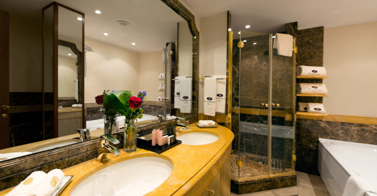 Suite Deluxe, with superb lake view particularly spacious, perfectly furnished with Italian manufacture carpets and fabrics, with its balcony overlooking the enchanting Ceresio lake shores and the surrounding mountains comfortable and elegantly furnished living area with sofa, armchair, coffee table and desk. Adjoining sitting room with dining table and large living area, Flat screen TV with an interactive-system, Internet and Wi-Fi, safe and minibar. Bathrooms, richly decorated in marble, include bath with shower, towel rails and steam-resistant mirror. Measure 80sqm. Possibility to have a connecting Standard room