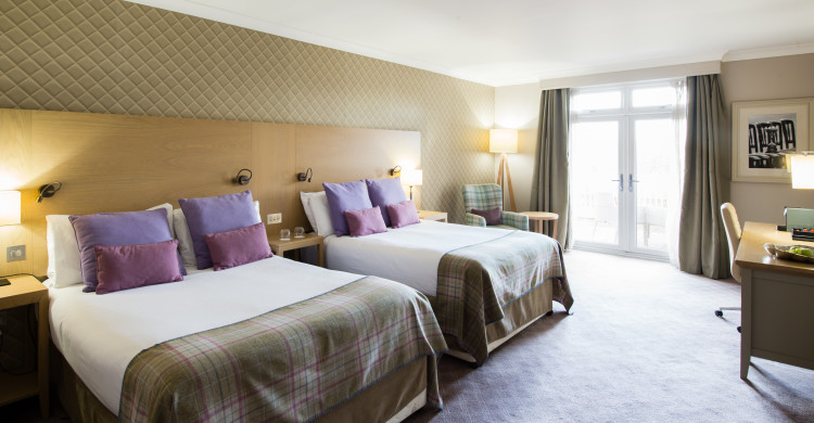 Our Signature Double Double rooms feature The Belfry’s classic, contemporary design of calming neutral tones and bold accents as well as beautiful views across the grounds. You’ll also find luxurious little touches including cosy duvets, crisp bed linen, dreamy pillows and fluffy towels. Our Signature Double Double rooms also offer more space to work or relax, including two double beds, a spacious seating area and large bathrooms.