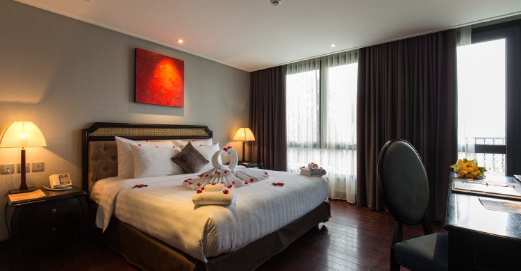 The hotel's design is a perfect balance of modern and tradition styles. We wish to give the customers all the comforts and convenience of modern European rooms, but overall the hotel layout is strongly influenced by Eastern Asian character including a fresh vegetation flower wall in hotel’s outside to Lotus leaf pictures in the rooms. We are also have a passion service provided by our Beautiful Ambassadors. And the Boutique Music for all days make you feel relax and more comfortable during your time with us.