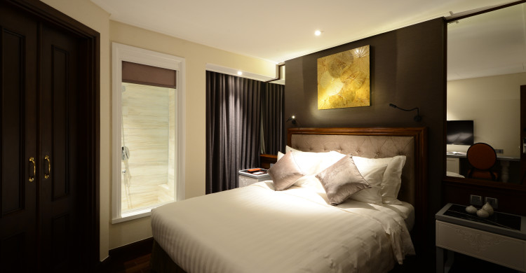 The Standard rooms features everything you need for a comfy, enjoyable stay. A great space to relax in after a day of sightseeing around Hanoi with a sumptuous bed and an array of modern facilities. 19,3 Square M , false window with internal view only, standing shower.
