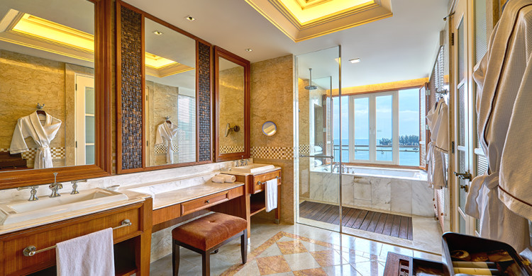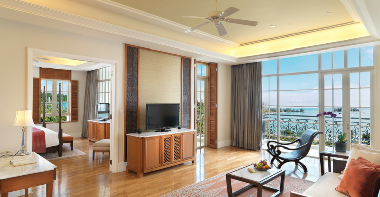 The Countess Suite is 110sqm, has a separate living room equipped with home entertainment system. This beautiful suite feature a four-poster King bed, a spacious bathroom with separate rainfall shower and an over-sized Jacuzzi fits for 2 persons. All suites are air-conditioned.