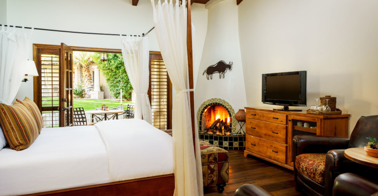 Your premier, 400-square-foot Garden Casita features a king bed, vaulted ceiling, skylight, bathroom with walk-in shower, and private patio with courtyard views.