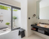 Inside, you’ll find a king-size bed with a premium King Koil mattress and goose-down pillows, designed for deep, restorative sleep. The semi-open bathroom features natural stone elements, including a petrified wood sink and an outdoor shower, letting you bathe under the sky in total privacy.