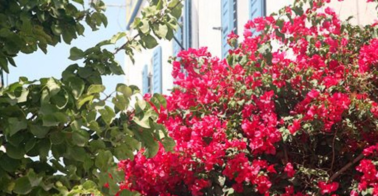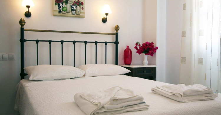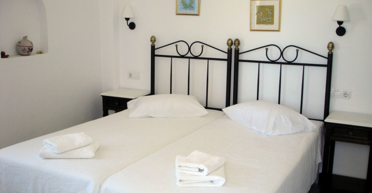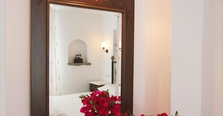 The complex, built at the slope of the hill, according to the standards of traditional Aegean architecture, consists of 14 rooms and small suites. Its trademark is the pink bougainvillea embracing the snow-white building.