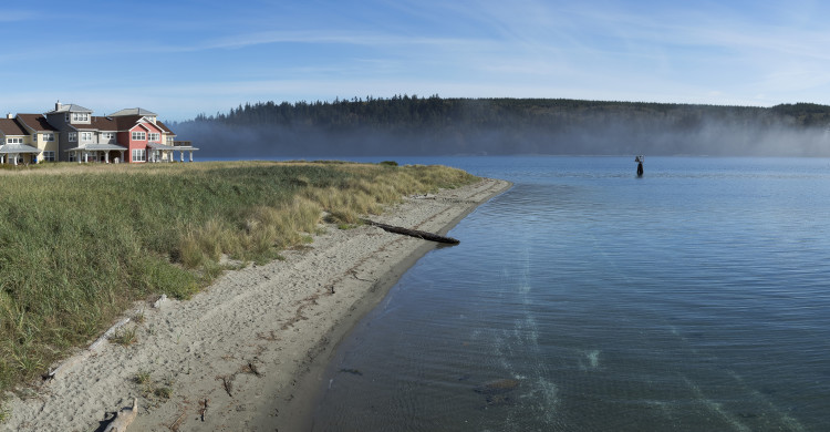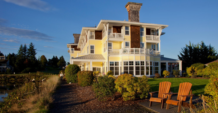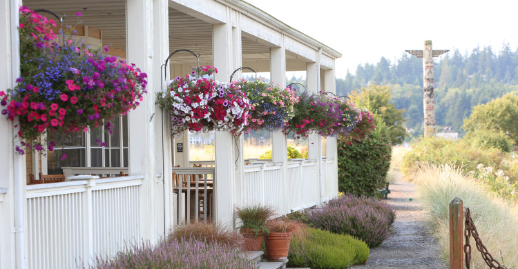 This 37-room inn features spacious guest rooms with mountain and water views that take your breath away. Cozy up in front of your gas fireplace and share a peaceful moment. Linger in the comfort of your accommodations as you enjoy deep slumber and feel refreshed as you begin your next day. Splurge a bit on one of the two suites that include balconies and additional living space. Take a stroll through the lobby and first floor to enjoy rotating local artwork and historic photos. Find comfort in the common rooms as you look upon nature (often spotted are bald eagles, sea otters, and blue Heron).