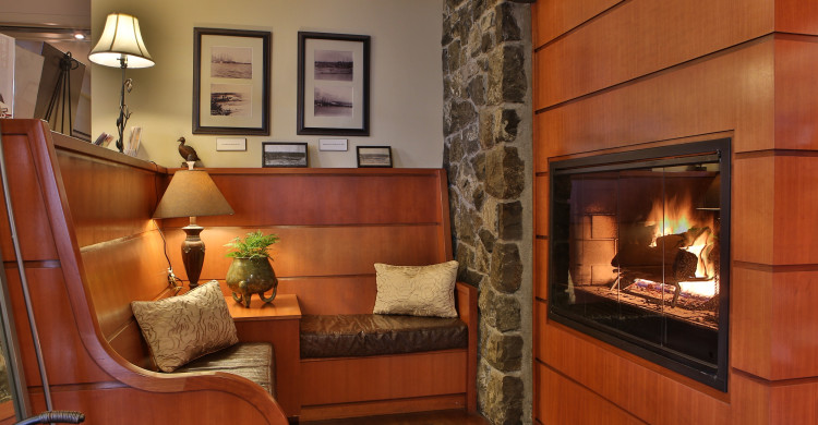 The resort restaurant, The Fireside, serves breakfast, lunch, and a daily dinner menu. The menus change seasonally to reflect the freshest locally sourced produce, meats, and cheeses. Savor the bounty of the local farms, fisheries, and artisans. Arrange for a picnic to take with you on your adventures or a personalized romantic tasting menu in the dining room with wine pairings selected by the sommelier from the resort's cellar. The Fireside features a large fireplace in the center of the room with candle lit tables and comfortable seating including cozy bench seating.