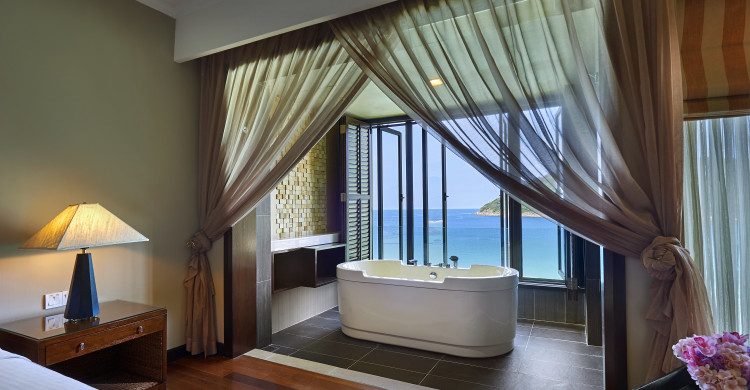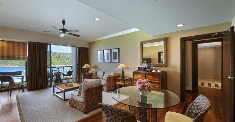 -Room size: 100 m² -One-bedroom suite with separate living room and dining area -King-size bed -Private balcony overlooking the ocean -Air-conditioning and ceiling fan -Bathroom with separate rain shower cubicle -Separate bathtub with jacuzzi overlooking the ocean