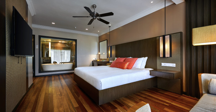 -Room size: 80 m² -Separate living room -King-size bed -Private veranda overlooking the ocean -Air-conditioning and ceiling fan -Bathroom with bathtub and separate rain shower cubicle