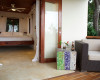 Located on the other side of the pool deck from the dining room and common gathering area, this room is close enough to the main house but still feel independent. A very cozy room on the first floor, with a king bed lined with luxurious linens, private bathroom and ocean view balcony.