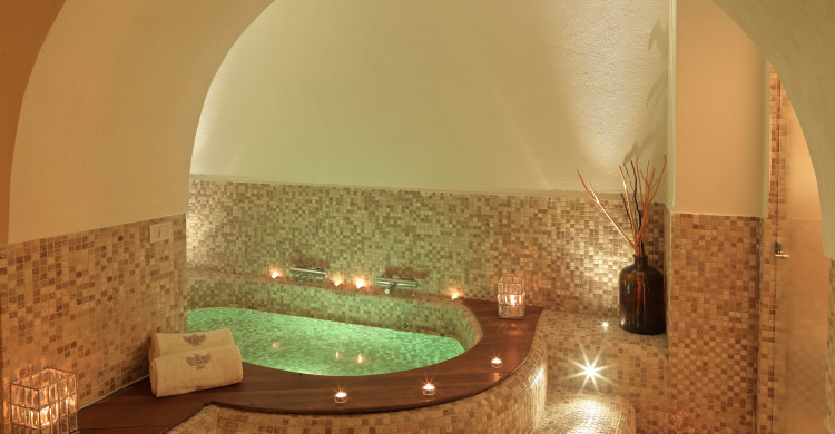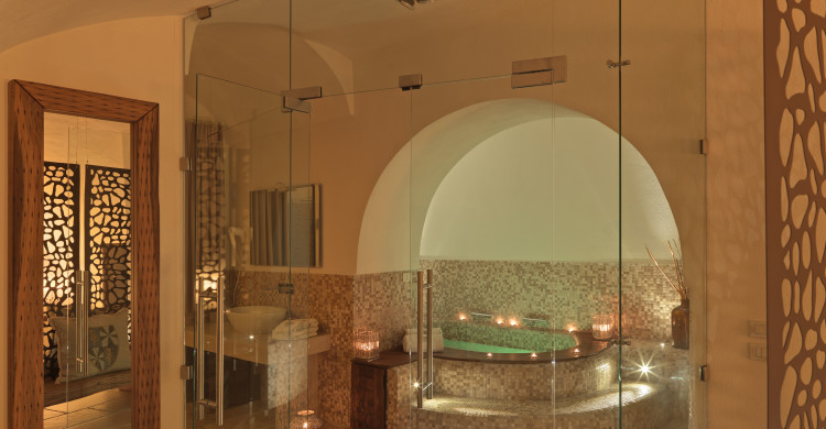 The Grand Deluxe Suite with its four-poster bed, the hydromassage hot tub with chromotherapy and its fine decoration and atmosphere is the ideal place for your physical and mental relaxation. It also has direct access to the Wellness Area where you can enjoy a regenerating massage from the expert hands of our trained staff.