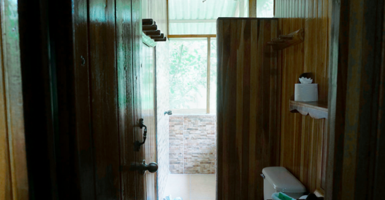 This tree house has a large wrap-around deck to relax on and enjoy the sounds of the jungle. Toucans, monkeys, and iguanas visit this part of the grounds often. There are two comfortable queen beds and 1 single (pull-out), and an extra twin mattress for the floor for a child can be provided upon request. This tree house is accommodated with ceiling fans inside and out. There are also hammocks underneath each of these tree houses. Agouti has plenty of room and features an open shower that will bring you closer to Costa Rica’s beautiful jungle!