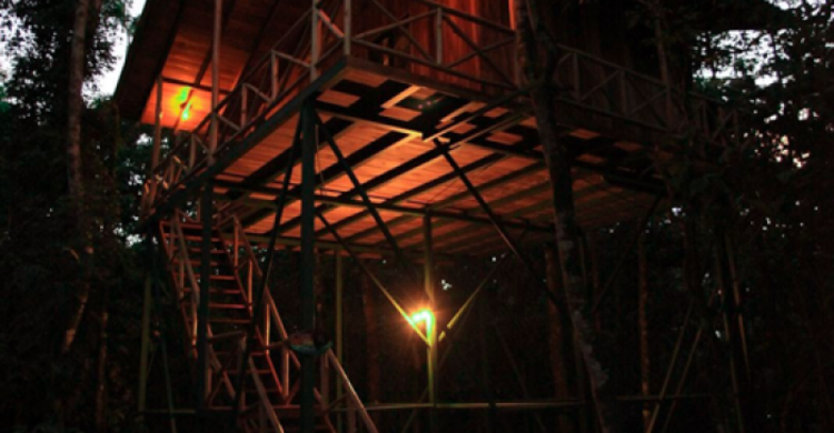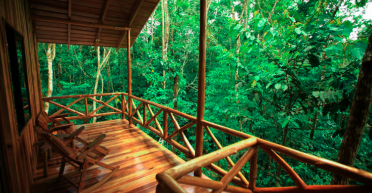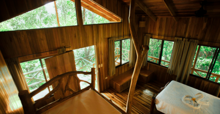 The Monkey tree house has one level, it's large, and is situated further back on the property. This tree house is private and the scenery is beautiful.
