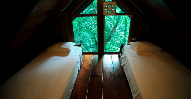 The Sloth tree house has two levels. This is our larger of the 2 story tree houses with big windows so you feel like you are right in the jungle.
