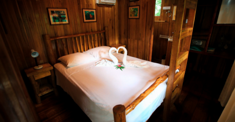 The Toucan tree house has two levels. On the main level there is a double bed and in the loft this is one twin bed and one small bed appropriate for small children ages 7 and under.