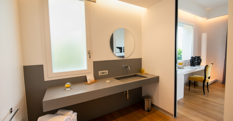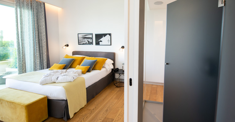 The charme rooms are spacious, comfortable and designed for couples who love to enjoy the sea thanks to the terrace overlooking the amazing Gulf of Mondello. You will enjoy a holiday of discovering Sicily with style and charme. With a size of over 20 square meters, the Charme room welcomes its guests with soft colors and an essential designed furniture that privileges and enhances the elements of art.It is designed for the quality of sleep, thanks to the perfect choice of bed and pillows and for the quality of living space choosing particular and prestigious materials as the parquet on the floor.
