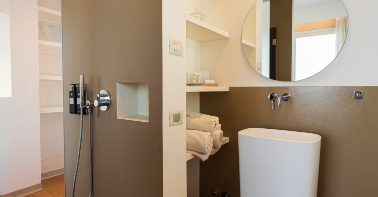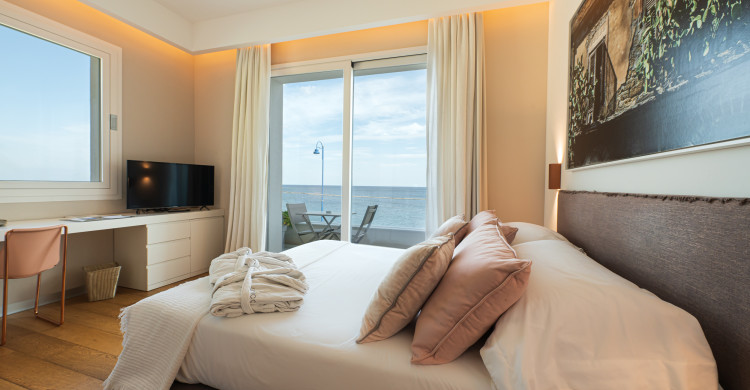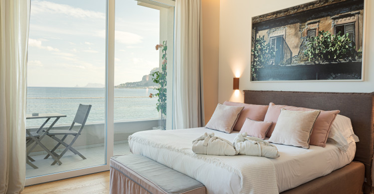 The charme rooms are spacious, comfortable and designed for couples who love to enjoy the sea thanks to the terrace overlooking the amazing Gulf of Mondello. You will enjoy a holiday of discovering Sicily with style and charme. With a size of over 20 square meters, the Charme room welcomes its guests with soft colors and an essential designed furniture that privileges and enhances the elements of art.It is designed for the quality of sleep, thanks to the perfect choice of bed and pillows and for the quality of living space choosing particular and prestigious materials as the parquet on the floor.