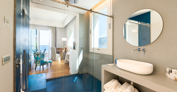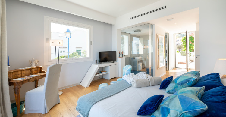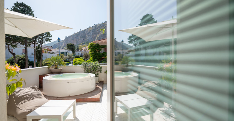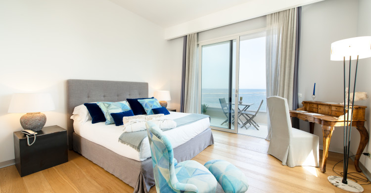 The Jr Suite is designed for those who are looking for more space and comfort for themselves: over 26 square meters chromatically inspired by deep blue. Ideal environment to satisfy the desire for charm, privacy and sophistication of the couple. The room is also suitable for a family of three people: in fact, it can accommodate a comfortable third folding bed. The large walk-in shower with waterfalls is one of the elements that characterize the room, along with the art furnishings and its private terraces: one furnished on the sea and one with mini private pool on the garden. Art is one of the main themes: each room becomes a personal exhibition conceived for its guests. Buzzotta, Schifano, Morales and other contemporary artists succeed each other in a tale steeped in Sicily and art. The soft tones of the design furniture become the canvas on which to depict the memories of your stay Unìco. The Jr Suite is designed for the quality of sleep, thanks to the choice of king-size and pillow menu. Parquet and the choice of design accessories will also guarantee the quality of the living room. The addition of the third bed is only allowed for children under 18. Room facilities: - Air conditioning - Wi-Fi - Large walk-in shower with seat and waterfalls - Furnished terrace on the sea - Terrace with mini pool on the garden - Safe - Smart TV 40"Dvbt - Minibar with assortment of water and soft drinks - 500gr bathrobe and bathroom set - Maison Margiela courtesy set - Hairdryer Pets of any size or race are not allowed.