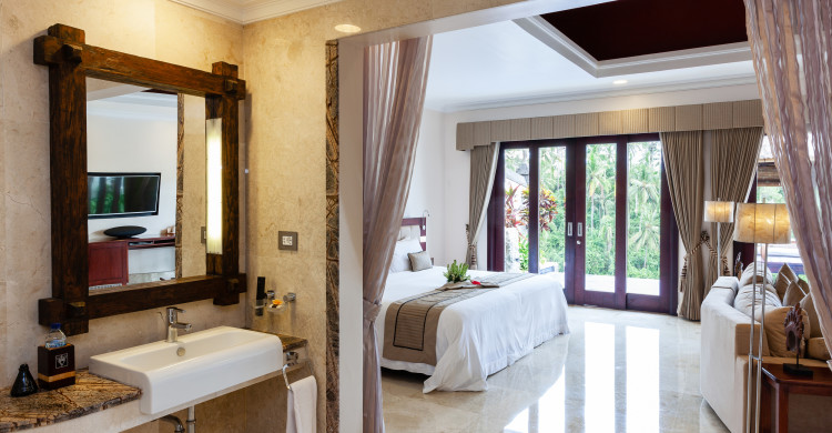 The Deluxe Terrace Villa took their design from their original Terrace Villa counterparts, however with larger infinity pool and a newer design that integrates Balinese architecture seamlessly. Located on three different levels of this honeymoon resort in Bali, your romantic villa can be up close to the Petanu river and immersed in greenery, or near the main pool and restaurant facilities with expansive valley views.