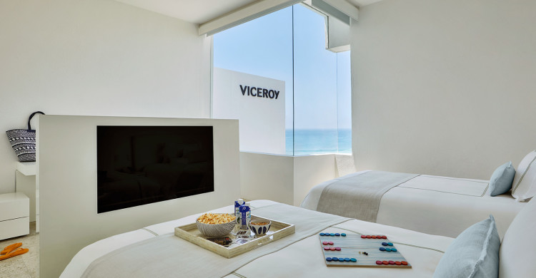 1615 Sq.Ft; 150 Sqm 2 King Beds 2 Double Beds Full Ocean View Amenities include: Living room, dining area, and sitting area Complimentary Wi-Fi Entertainment – 65’ Flat-screen TV, premium channels, in room guest connectivity and entertainment Polk Audio-System - music system in guest bed, living and bathroom Adjustable color mood lighting Nespresso Coffee Machine – replenished daily, minibar, and room service Premium bedding, blackout drapes/curtains Complimentary turn-down service Private bathroom, outdoor bathtub and separate indoor rain showers Safe, iron/ironing board, and desk Viceroy luxury bathrobes, Roil and Natura Bisse Bath amenities
