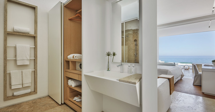 Immerse yourself in this 575-square-foot indoor/outdoor living space. Every room is fashioned to evoke a sense of well-being and harmony with the water and sky. Among the highlights: a furnished balcony, and sumptuous ROIL bath products.