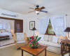 Our two 400 square foot Plantation Suites – one ocean view and one garden view are located on the second level of the main building and overlook our lush tropical gardens or the inviting pool and beach. From the shared verandah, you enter a bright and spacious sitting area with a separate king sized bedroom just beyond. The custom made mahogany beds have luxurious down pillows and light weight duvets, with delicate netted canopies and are completed by our signature bathrobes. Each suite has air conditioning with ceiling fans to ensure your ultimate comfort.