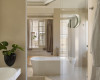 In addition to the elegant and luminous bedroom, there is an elegant living room with singular, classic Italian furniture and a spectacular glass bathroom integrated into the bedroom and finished in marble, natural stones and pietra di Trani. Equipped with all the services and facilities of its category, each suite features a complete set of luxury amenities from the Carner Barcelona brand and a complete Nespresso coffee set in the room.