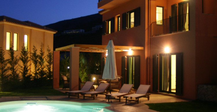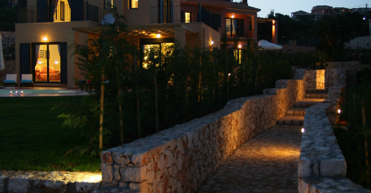 Situated right by the sea, on the coastline of the highly sought-after area of Skala Kefalonia, enjoying superb sea views and direct access to turquoise waters, Villa Brio Exclusive offers an impressive accommodation comprising three self-catering villas (Villa A, Villa B, and Villa C), each with a private lush garden that extends to a privileged 42 sq.m banana-shaped private swimming pool.