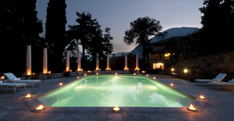 Features: • Air-conditioning in every bedroom • “Bio Allergy friendly room (a system of natural and ecofriendly prophylaxis to eliminate microorganisms and allergens in the air, in the bed, fabrics and of surfaces of the room) • Pet friendly • Unlimited Wi-Fi Internet connection • CDs player with a selection of musical CDs in the lounge • Sat TV in every bedroom • Safe for values in every bedroom • Baby bed – Baby cot – Baby chair • Fully equipped professional kitchen • Fine modern heated pool with a spacious area for sunbathing, comfortable sun loungers, tables, chairs, umbrellas and a shower with hot water • English garden (mid-19th century) which features age old trees of great beauty • Small vegetable garden with a variety of fruit trees. Should they so wish, guests at the Villa may personally select the organic fruit and vegetables to be enjoyed in the many excellent dishes prepared by the chef at their service • Tennis court with lighting for games in the evenings • Games room with table tennis table and table football • American billiards table • Games room for kids • For the younger guests and for their parents’ peace of mind, there is a safe, protected playground designed especially for their use and pleasure • Small fitness room with a sport apparatus • Antique cellar filled with a vast selection of wines (Italian and International selection) • Large car parking • Private dock with access on the lake • Private jetty with buoy so that motorboats can be moored there