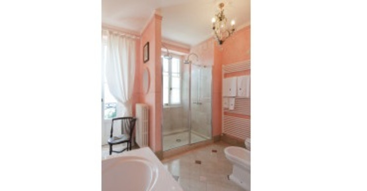 Ground floor: The large foyer on the ground floor with its beautiful 18th century polychrome marble fireplace, leads through a conservatory-style area with superb lake views to the dining room and salon. On the same level there are a bedroom with a bathroom for the disabled, a professional kitchen, a laundry room, house bathroom and games room.