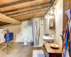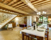 GROUND FLOOR: There is a modern style kitchen with all the amenities: dishwasher, oven, microwave oven, a pantry with all you need to cook in terms of utensils. Close to it, a big living room with a fireplace, a big table that can host up to 10 people and 2 nice and comfy sofas + an armchair. Always on the 1st floor, there is the laundry with everything you need to do your washing – no dryer – and a bathroom with shower.