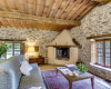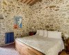 1st FLOOR: Here there is the second big living room with fireplace, sofas, a bookshelf with books gifted by our lovely clients, TV corner and satellite. On the first floor, there are also a master bedroom (king size bed) with a bathroom inside (this room is not equipped with A/C as it is surrounded by thick walls – the temperature is perfectly fresh during summer). There is another spare bathroom facing the living room and then there is another king side bedroom with A/C.
