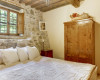 Ascend to the first floor to discover a second expansive living area, complete with another fireplace, a rich collection of books donated by our cherished guests, a TV corner with satellite, and comfortable sofas. The master bedroom, boasting a king-size bed and an ensuite bathroom, offers a naturally cool environment, thanks to the villa’s thick walls, eliminating the need for A/C. Another king-size bedroom with A/C, along with a spare bathroom, completes the first-floor offerings.