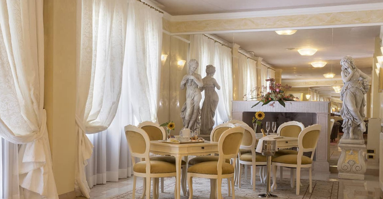 The Bolognese Restaurant, located in the prestigious Villa Pace Park Hotel Bolognese****S, offers a dining experience that blends intimate settings with exquisite Venetian cuisine, creating memories of timeless elegance.