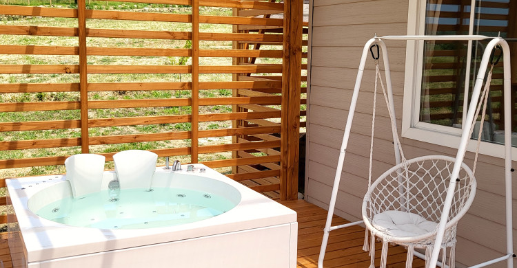 -Free WI-FI -Private hot tub -Minibar -Kitchen and 2 private bathrooms -Tv -Fridge and freezer -Air Conditioner (also heats)