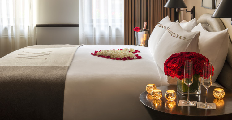 Bottle of house champagne - Rose petal turn down - Chocolate covered strawberries - Guaranteed late check-out of 2…