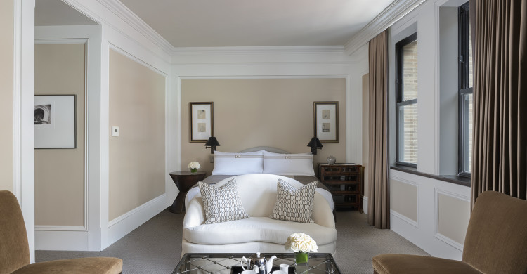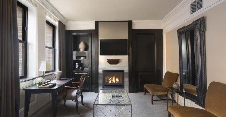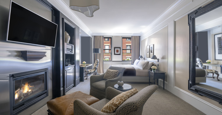 •King or Queen bed •Gas fireplace •Mounted 49″ 4K Smart TV •Sitting area •Complimentary wireless internet •Marble bathroom features a combination rainforest shower and deep jetted tub •Heated towel rack •Custom designed bath amenities Frette linens, towels, robes a variety of complimentary bath salts 24 room service private bar