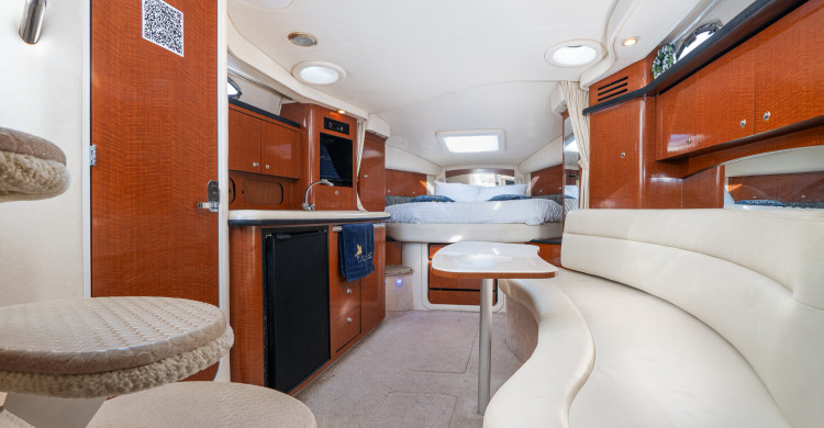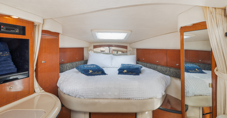 From the moment you’re picked up at your accommodation, everything is taken care of. Upon arrival at the marina, your private yacht awaits: refined, comfortable, and completely yours. Inside, you’ll find an air-conditioned suite with a king-size bed, two plush sofas, a fully equipped kitchen, and a 47-inch screen with Netflix. Step outside and the ocean greets you — with a 10x10 floating platform, paddleboards, and snorkeling gear inviting you to play or relax as you wish.
