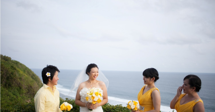 A beautiful wedding package in the south-west of Bali with scenery of mountain and Indian ocean