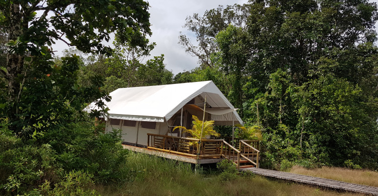 After a delicious and relaxing breakfast, you will leave the hustle and bustle of the capital behind you as you prepare yourself for something really quite different. The scenery will change as you leave the city behind you, gradually becoming higher and more varied. After around three hours you will arrive at Trapeang Rung lodge, located in the shadow of the Elephant and Cardamom mountains. Here you and your loved one will be able to have some time to take in the beautiful scenery over a coffee. You can freshen up at the lodge’s comfortable lounge and enjoy lunch before embarking on a spectacular one hour trip on the Preak Tachan River. You will see some of Cambodia’s beautiful countryside from a unique vantage point before arriving at your accommodation for the next for days, the special, unique and fabulous Cardamom Tented Camp. Here you will have time to settle into your comfortable safari-style glamping tent, full of all the amenities you would expect from a good hotel room, before enjoying a fabulous dinner deep in the heart of the Cambodian countryside at the riverside restaurant where you can relax with a drink as the sun sets over Botum Sakor. After dinner you will return to your tent where you will be able to refuel and ‘glamp’ under the stars, immersed within nature.