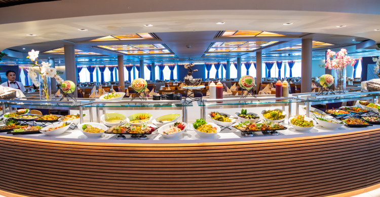 Set sail to a world of gourmet dining in 5 distinguished restaurants. The Crown Iris offers unparalleled variety and flexibility for guests with options for kosher, vegetarian, vegan and gluten-free options!
