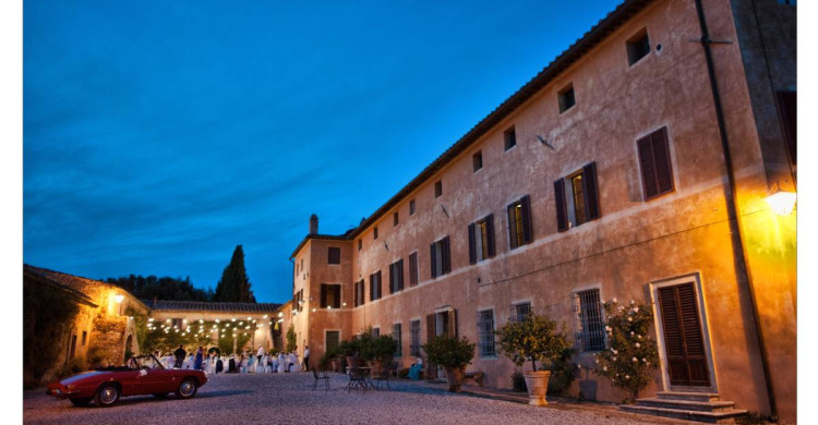 A typical Tuscan villa overlooking the rolling hills or a luxury hotel with Florence view.