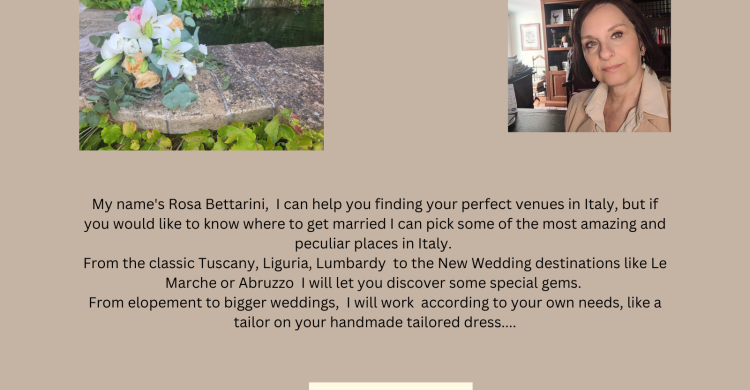 Wedding planner in Italy, fluent EN/IT/FR, I will provide your full quotation for accommodation, Wedding day, Wedding planning, suppliers and every aspect and activity will be provided in partnership with a local incoming agency. You can go Lakes, beach, hills and mountains view for a romantic and enchanting Wedding experience in Italy.