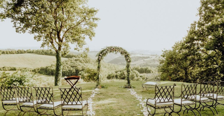 An ancient Borgo overlooking the lake, with an outdoor pool surrounded by the countryside. In this very small medieval village, left untouched by time, there is a little church where you can have the ceremony.