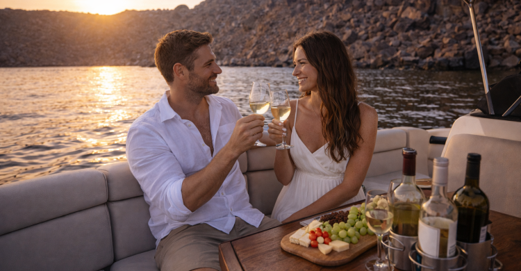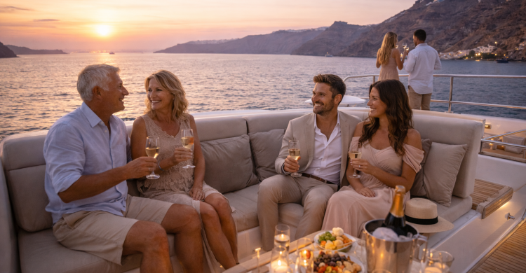 From the moment you land — greeted with a private transfer and a refreshing welcome drink — every detail is carefully orchestrated. Think handpicked cliffside suites overlooking the caldera, hidden sunset spots far from the crowds, candlelit dinners by the sea, and private yacht moments framed by volcanic beauty.
