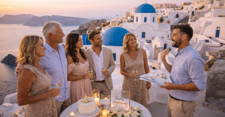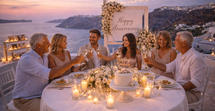 From elegant vow renewals overlooking the caldera to joyful birthday gatherings under the Greek sunset, their team ensures your celebration feels intimate, effortless and truly unforgettable.