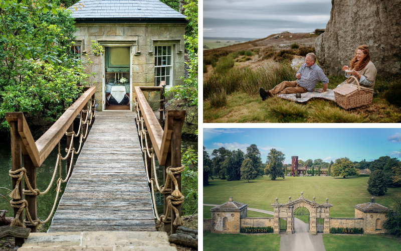 Celebrate your anniversary with an enchanting escape for two at Swinton Estate. Choose from an opulent evening of romance in the master suite at Swinton Park Hotel, or if you're looking for a unique countryside experience, stay in one of the Bivouac Tree Lodges, complete with hot tubs, log fires, tree-hung hammocks and blanket laden verandas.